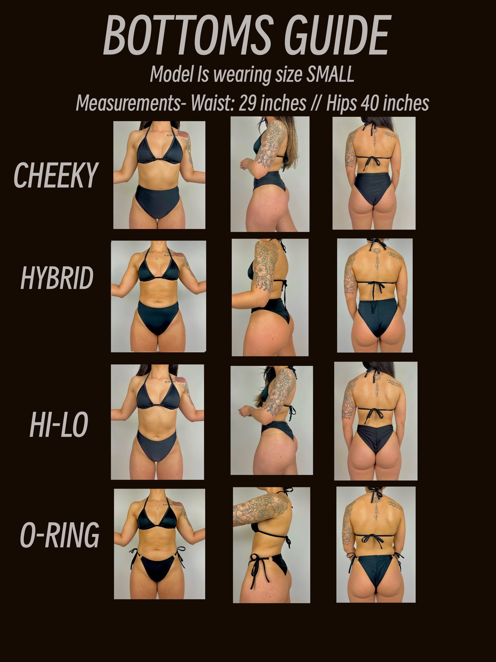 This listing is for our newest bikini set. This includes a triangle top and your choice of bottoms (MESH COVER SOLD SEPARATELY)